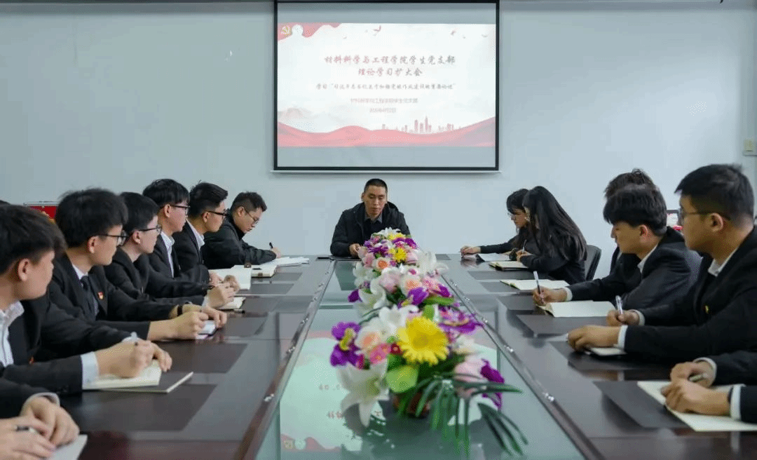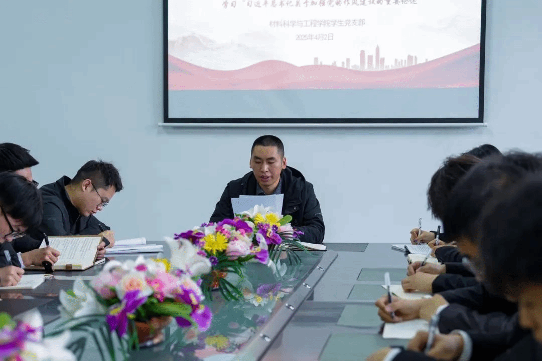 全面从严治党,作风建设永远在路上,材料科学与工程学院于2025年4月2日下午15:00在土木教学楼四楼会议室举办了以学习“习近平总书记关于加强党的作风建设的重要论述”为主题的学生党支部理论学习扩大会。本次活动以深入学习贯彻习近平总书记关于党的作风建设的重要论述为目的,聚焦新时代党的作风建设新要求,为学院推进全面从严治党提供了理论指导和实践路径。