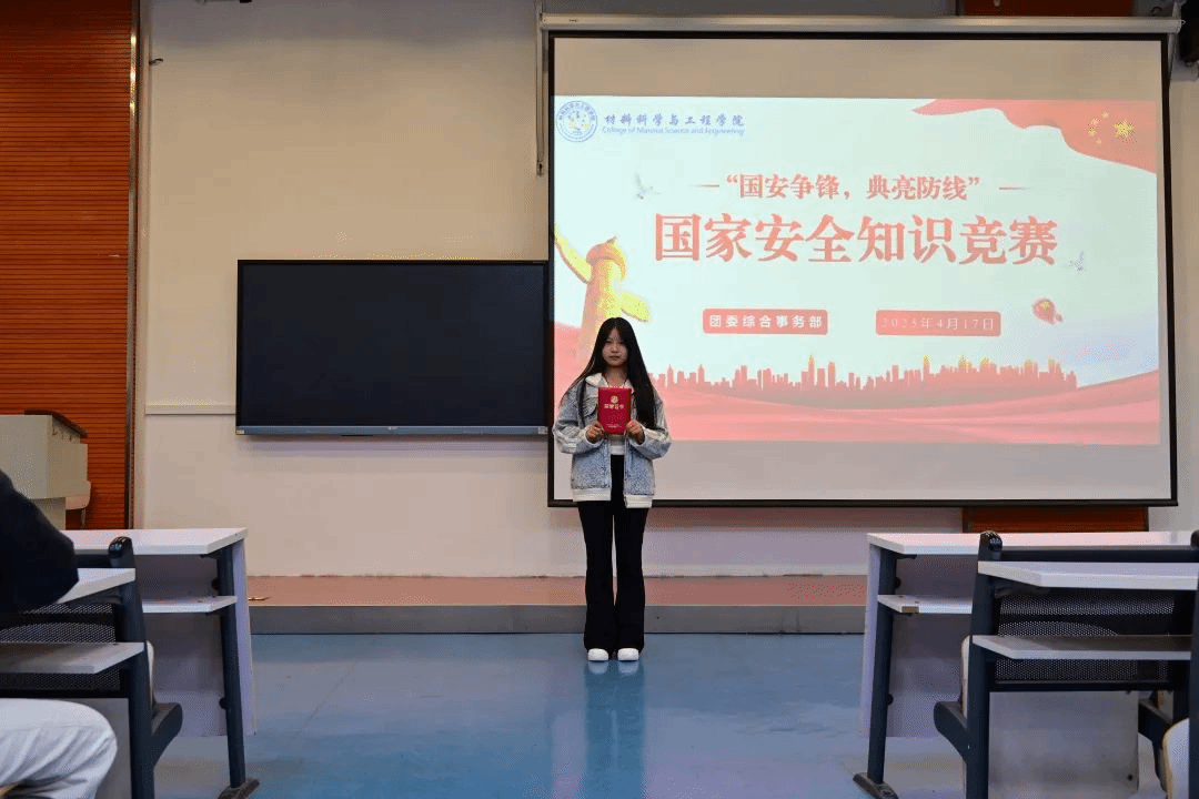 为增强学生国家安全意识,筑牢国家安全防线,材料科学与工程学院团委综合事务部于2025年4月17日举办“国安争锋,典亮防线”国家安全知识竞赛。本次活动采用线上线下结合形式,面向学院22-24级学生,通过知识竞答深化青年学子对国家安全的理解,激发守护家国的责任感与使命感。