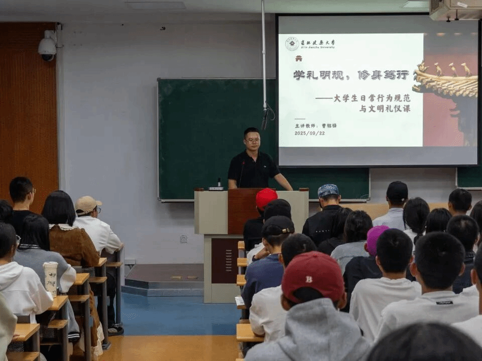 宣讲会上,曹老师围绕“大学生文明素养培育”主题,结合各年级学生校园场景与成长需求展开讲解,强调文明是外在规范与内在修养的统一,是学业与未来发展的重要基石,引导学生理解文明养成的基础性与持续性作用。
