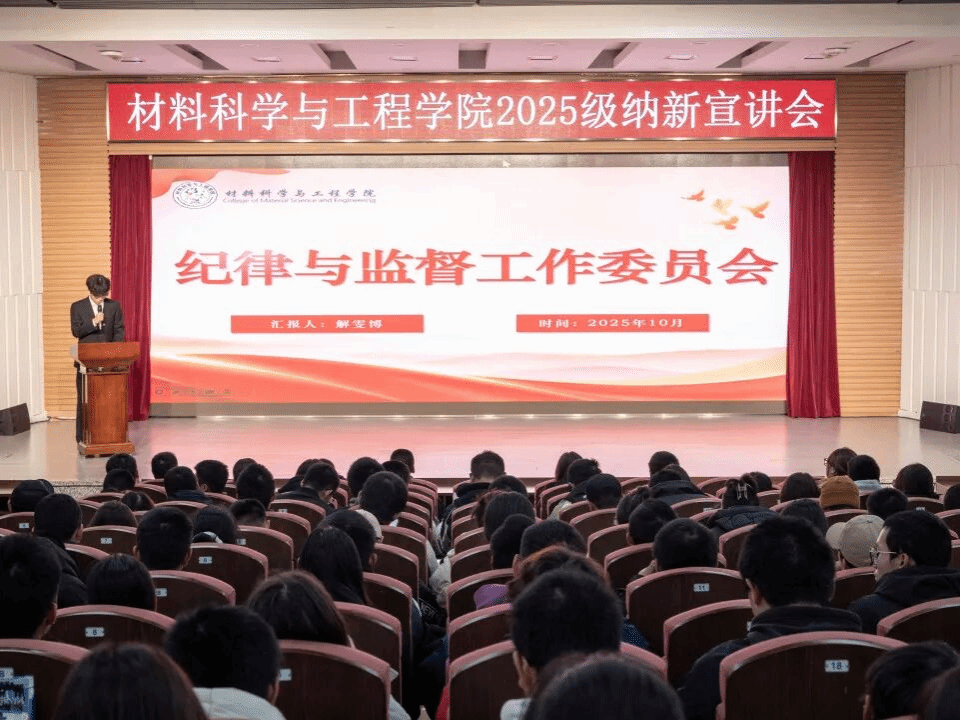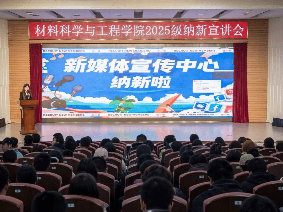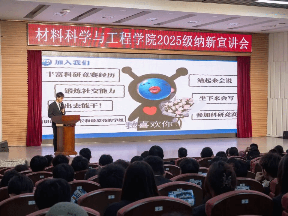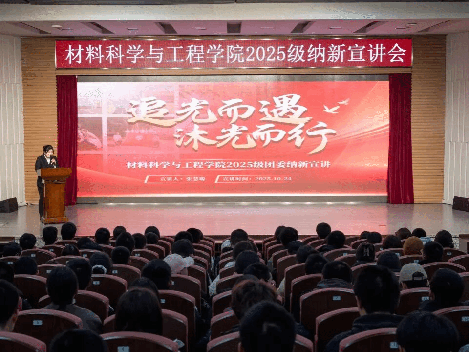 为强化学院团学组织建设、吸纳优秀新生力量、培养新一届学生骨干,同时为2025级新生搭建施展才智、提升能力的实践平台,材料科学与工程学院于2025年10月24日在逸夫楼报告厅召开2025年团学组织纳新宣讲会。本次宣讲会全方位解读各团学组织架构与核心职责,助力新生明确发展方向。