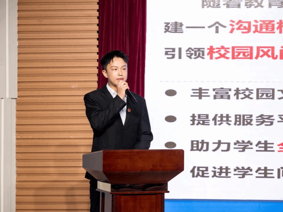 学生会主席团成员刘恩旭详细介绍组织架构与工作重点。学生会以“服务同学、丰富校园生活”为核心定位,围绕学生日常需求、学业发展、身心健康、文体活动等维度开展工作,既落实资助政策、维护寝室生活秩序,也策划体育赛事、校园文艺活动,用温暖服务与丰富活动构建有活力的校园生活氛围。