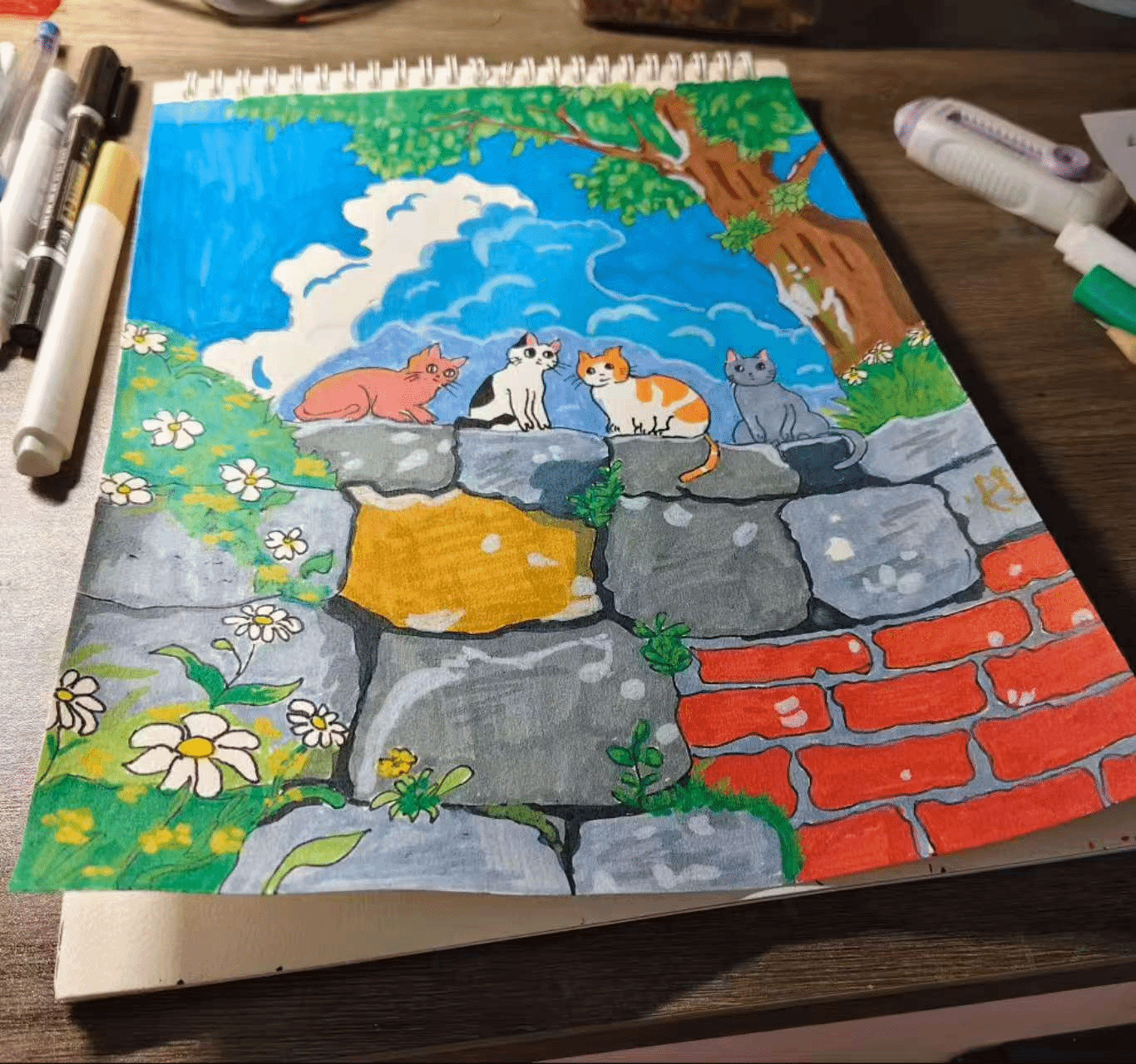 本次绘画活动为学生们营造了灵活便捷的参与体验。活动期间,学生们在公寓内自行安排创作时间,用画笔勾勒青春的模样、描绘阳光的心境,将学业压力与生活感悟融入色彩与线条之间;作品收集阶段,各班心理委员有序汇总画作,并统一上交至心理部干事,确保活动有序推进。