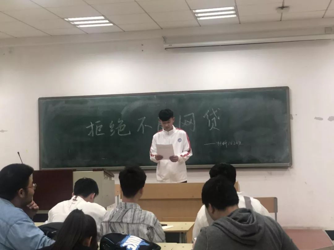 材料科学与工程学院以“拒绝不良网贷”为主题召开了班会,让同学们更加深刻的了解网贷的含义并签署承诺书。