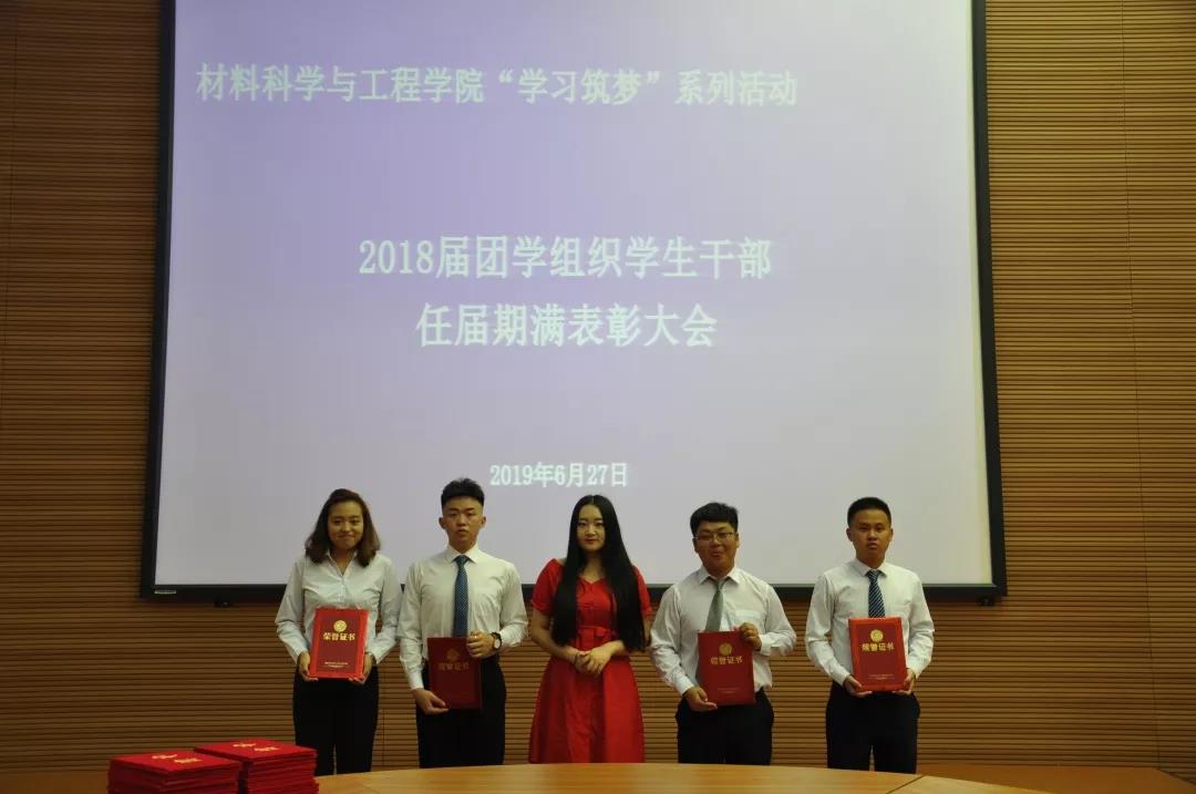 2019年6月27日,材料科学与工程学院在学校土木教学馆三楼圆弧报告厅举办了“2018届团学组织学生干部任届期满表彰大会”。材料科学与工程学院党委副书记高卫东老师,学院学工办全体教师及全体大三常委出席了本次活动。此次表彰大会由刘卉昇老师主持。