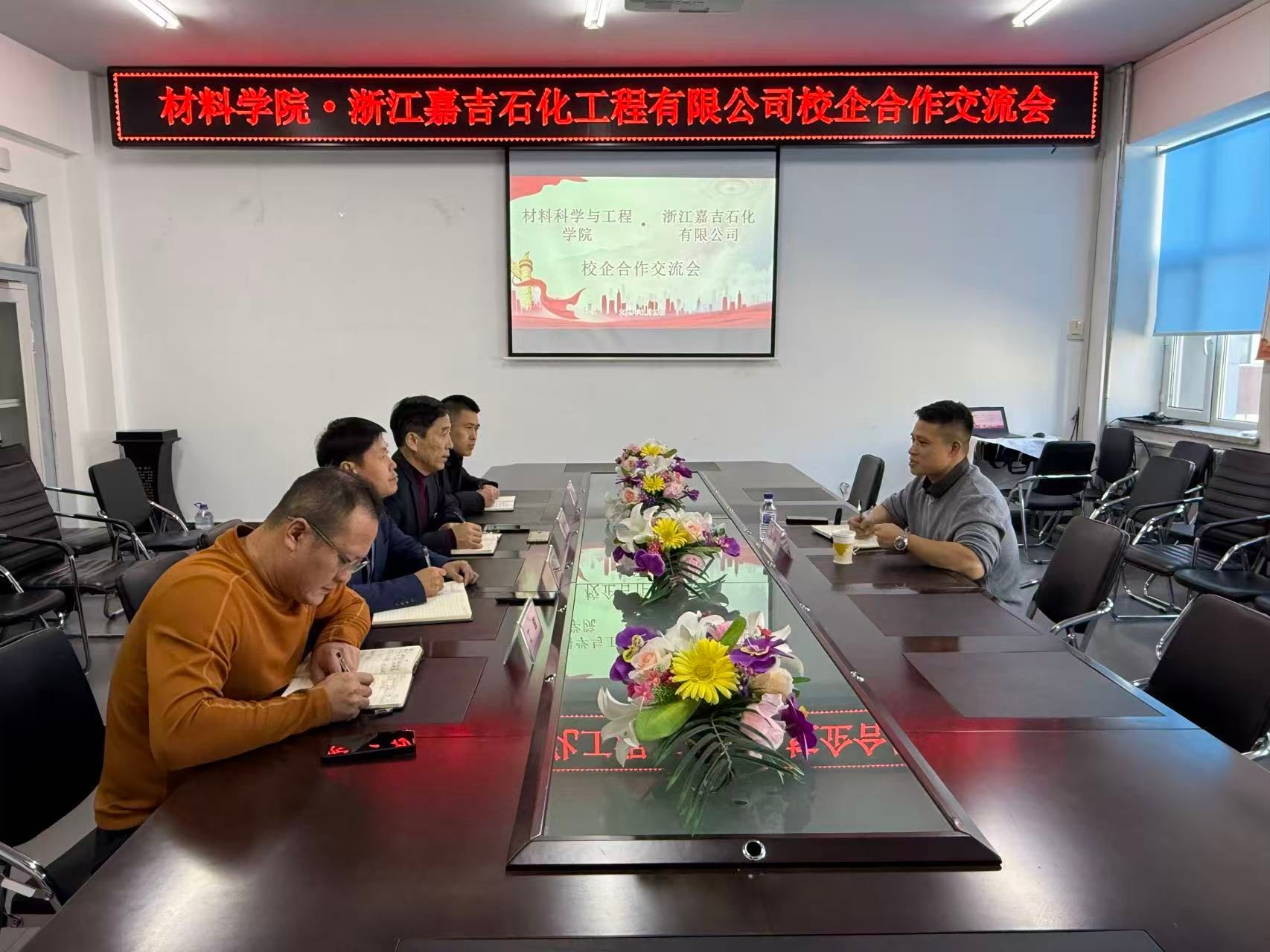 11月18日上午,材料科学与工程学院与浙江嘉吉石化工程有限公司在土木教学馆A407举行校企合作座谈。学院党委书记周景民、院长赵洪凯、副院长丁锐、汪佳、浙江嘉吉石化有限公司人力资源部经理王铖等出席座谈会。