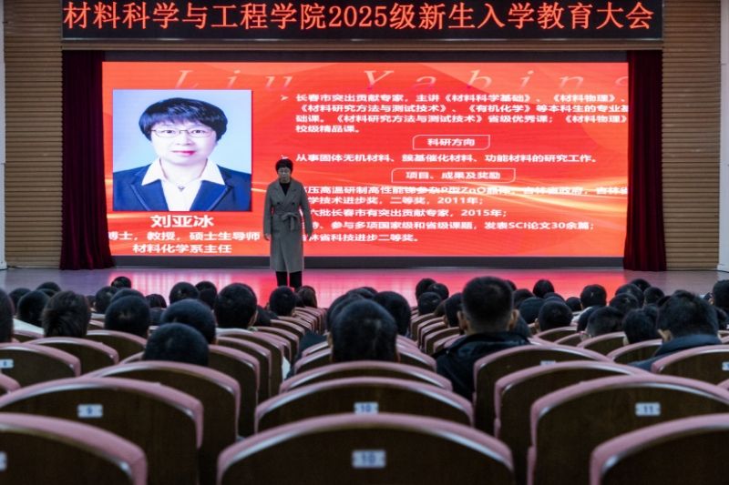赵洪凯向2025级全体新生介绍了材料科学与工程学院的发展历史,特别是对无机非金属材料工程、高分子材料与工程、材料化学、功能材料4个本科专业逐一进行介绍,展示了学院在学科建设、专业发展、科研创新和学生培养等方面取得的优异成绩。同时也向全体师生明确了学院未来的发展规划。