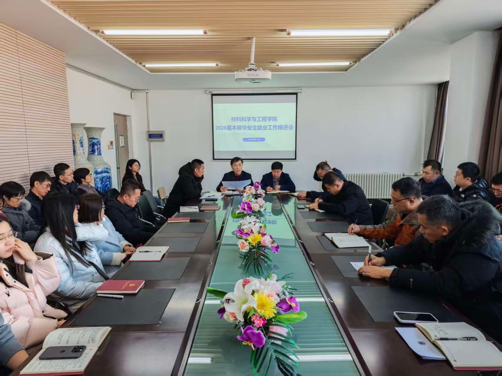 3月11日,材料科学与工程学院在行政楼B区313会议室召开2026届本硕毕业生就业工作推进会。学院党委书记周景民、院长赵洪凯、党委副书记李永涛、副院长丁锐、汪佳及全体教师参加会议。会议由周景民主持。